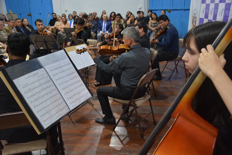 Las obras de Wolfgang Amadeus Mozart, Sergei Rachmaninoff y Edward Grieg interpretadas por violines, violas, violonchelos y contrabajos bajo la dirección del profesor Miguel Navia, emocionaron al público asistente que repletó el hall de la sede diplomática. La pieza Peer Gynt Suite N°1 de Grieg llevó a la cúspide las sensaciones en los asistentes que redoblaron los aplausos al término de la interpretación.