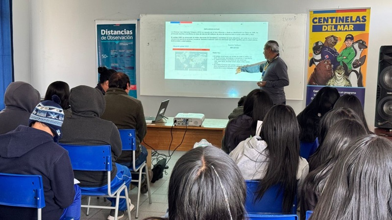 Fue así que una delegación de la Dirección Regional del Servicio llegó a la provincia de Parinacota, a efectuar dos charlas a un grupo de 31 estudiantes del Liceo Técnico Profesional Granaderos, en Putre. Los y las jóvenes de segundo y tercer año de enseñanza media, recibieron la capacitación correspondiente al programa, paso previo a su certificación como “Centinelas del Mar”, además de participar en una charla sobre acuicultura y especies endémicas de aguas continentales de la región, especialmente las que habitan en el altiplano.